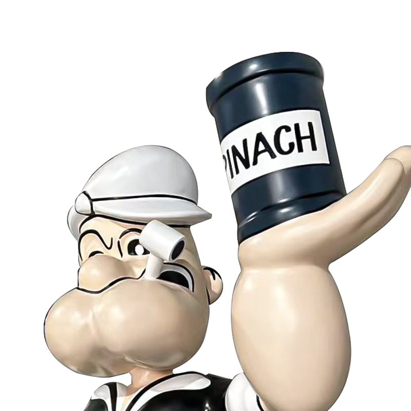 La nostra azienda ha personalizzato una scultura Popeye cartone animato, con dimensioni, colori e loghi su misura per le dimensioni del cliente.