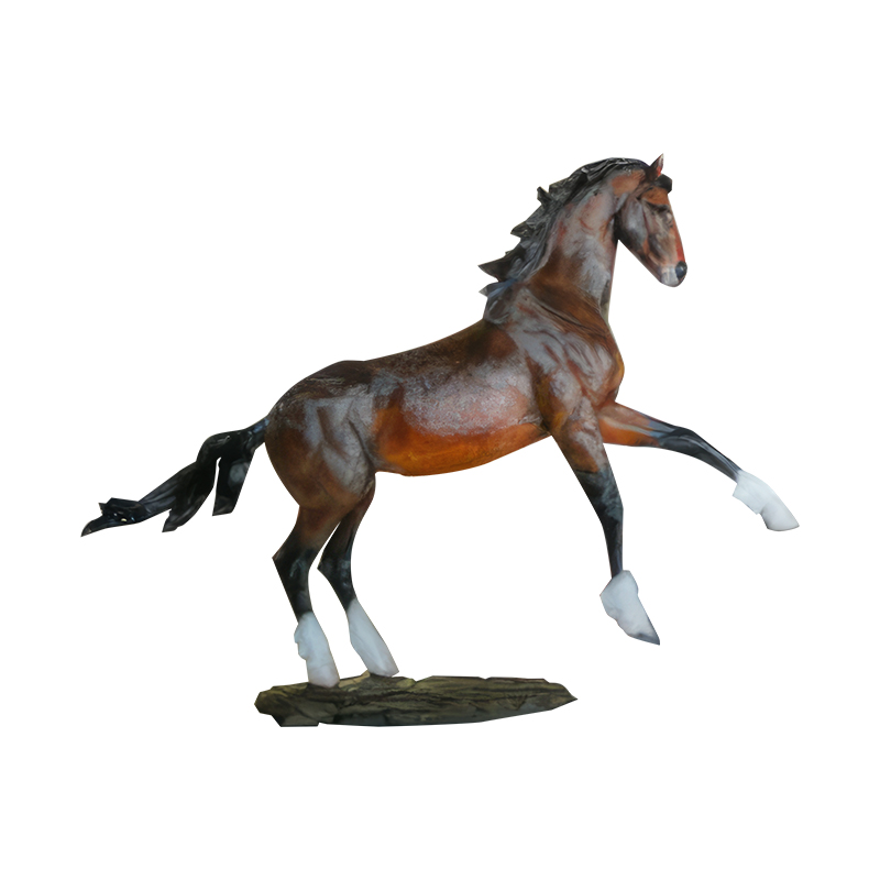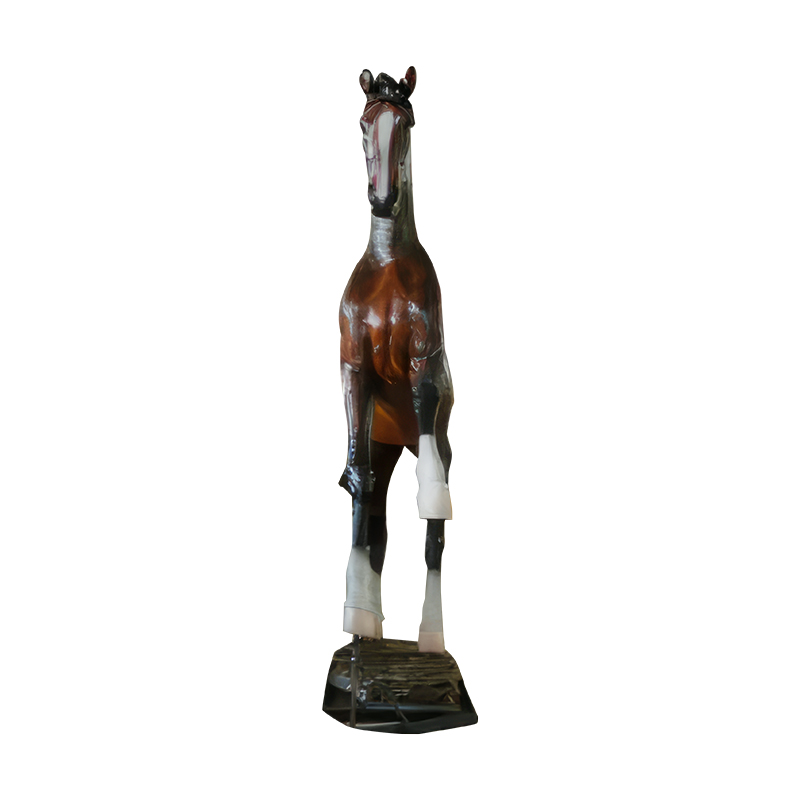 La scultura a cavallo simulata in fibra di vetro ha linee di superficie lisce, forme ben proporzionate, vivide e realistiche ed è adatta alla decorazione in una serie di decorazioni di scena come giardini, centri commerciali, paesaggi, ecc.