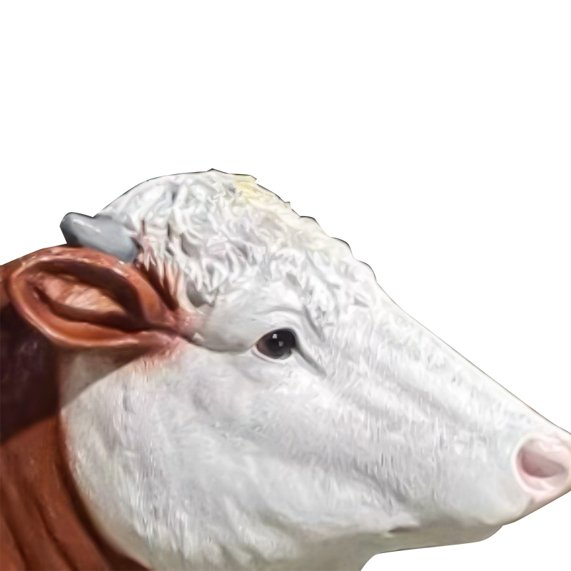 Alto grado di simulazione: la scultura è finemente scolpita e lucidata e il suo aspetto è molto simile a quello di una vera mucca, con dettagli come i capelli e la consistenza chiaramente visibili.